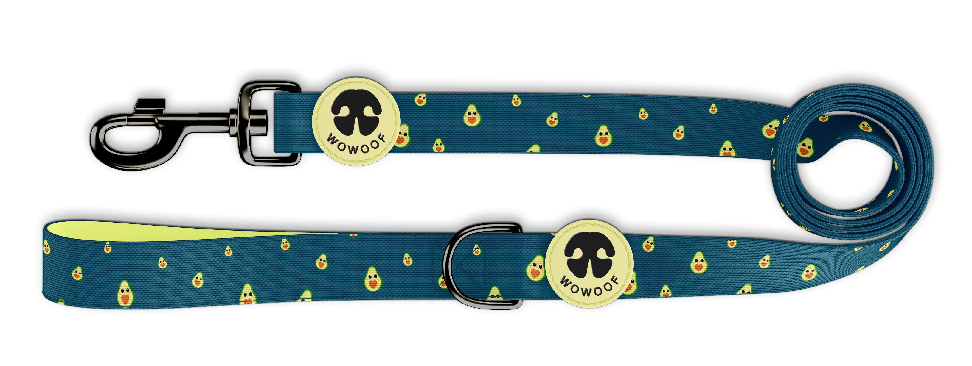 ¡Pasear con estilo y diversión, aguacates sin límites!. Descubre nuestra correa de perro AVOCADO, un diseño exclusivo con aguacates verdes cerceta que harán que cada paseo sea un festín de colores.