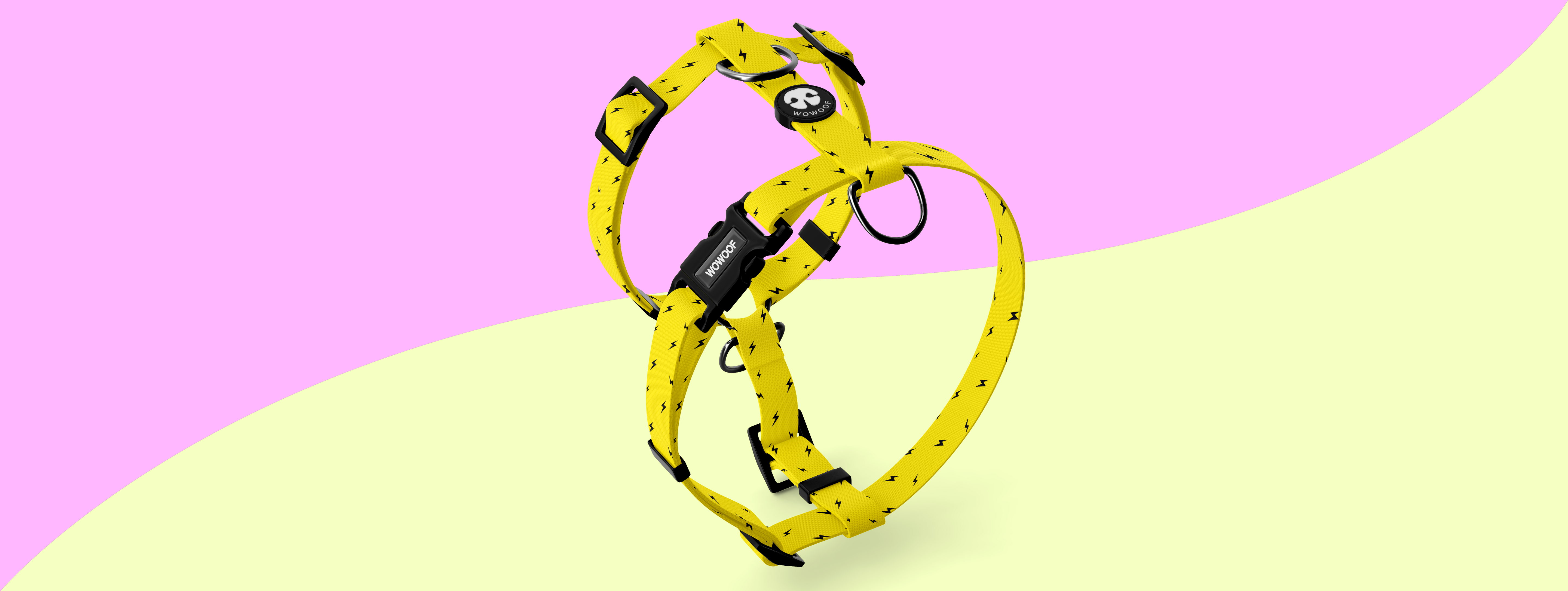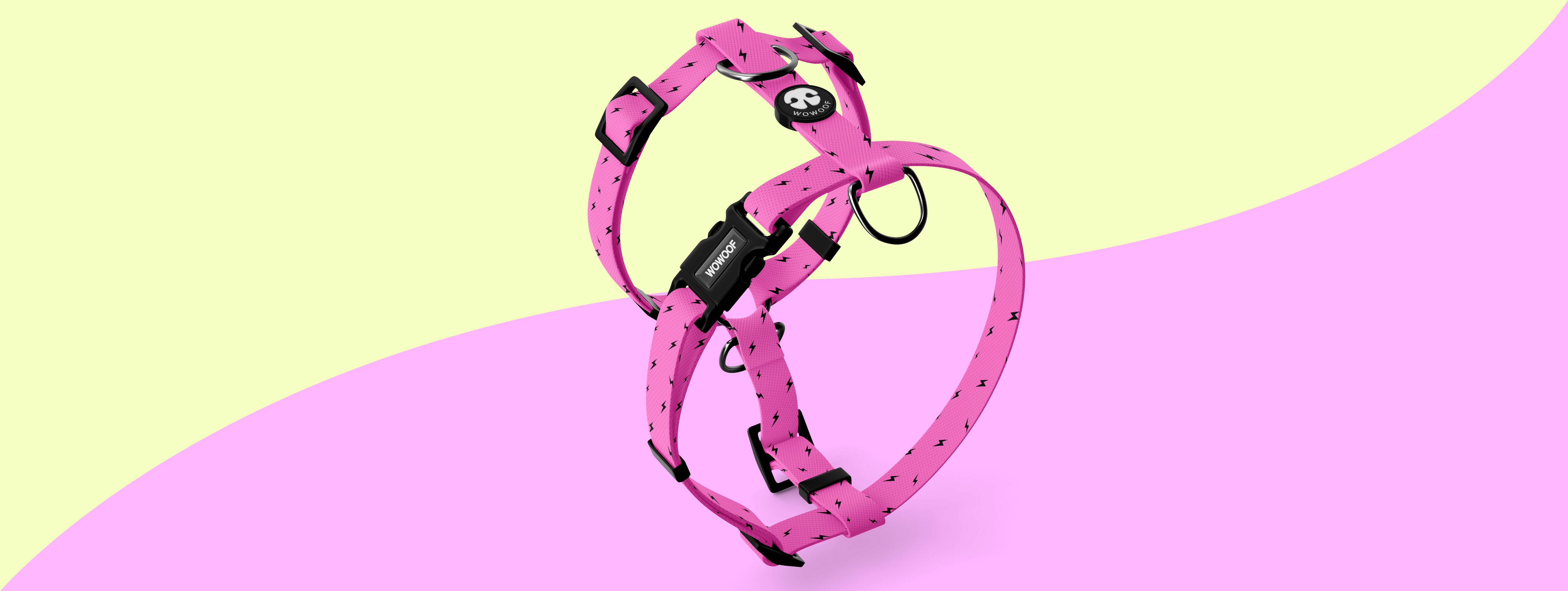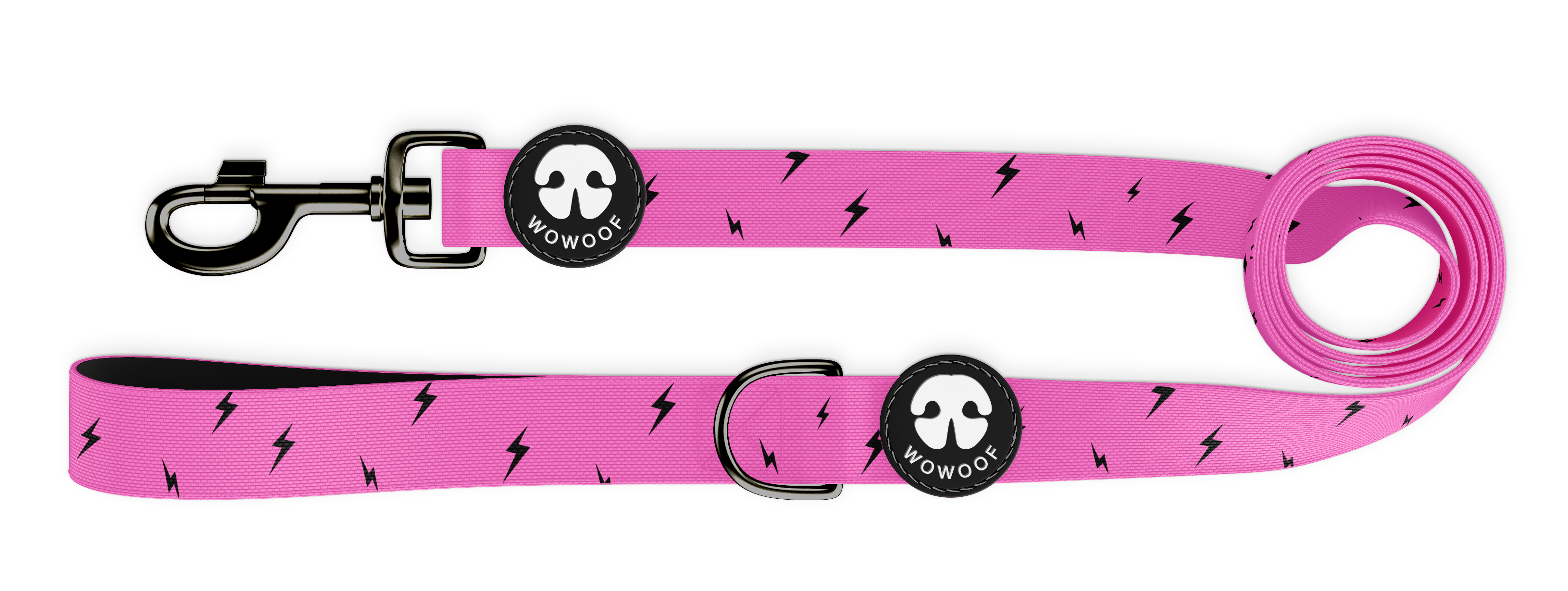 ¡Energía y elegancia en cada paso con la correa de perro YELLOW RAY! Rayos negros sobre fondo rosa fosforescente, tu perro será la estrella del vecindario.